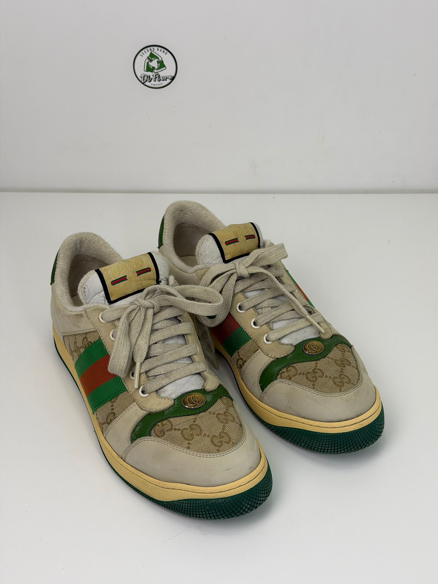 Gucci Screener effetto sporco Size 9=43 veste 43.5/44 beige verde e rossa