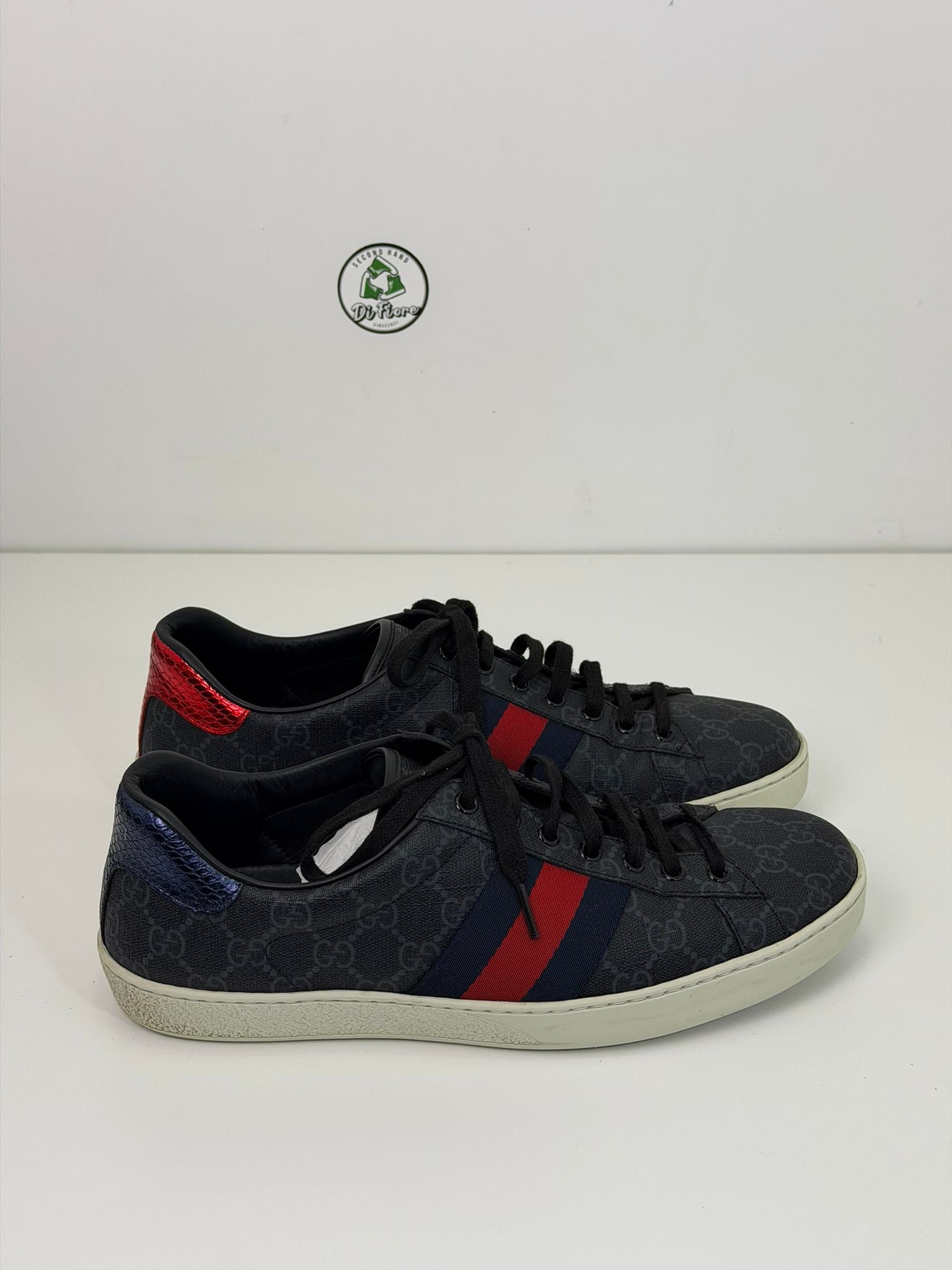 Gucci ace Size 9.5=43.5 veste 44 nere blu e rosse